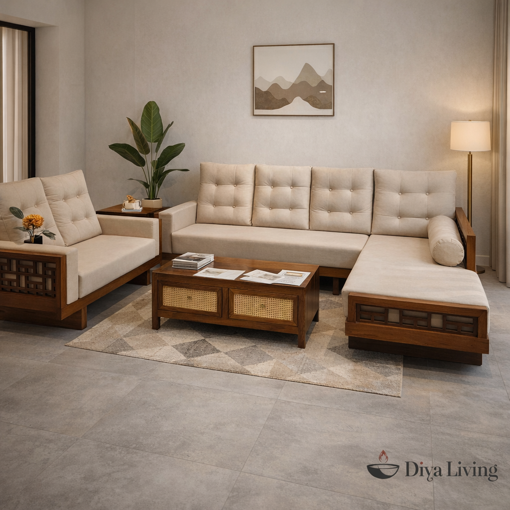 Comfort lies at the heart of Drift Lounge Sectional Sofa. Generously cushioned seating, paired with a supportive backrest, ensures a relaxed posture for long hours of lounging. Every detail, from the internal structure to the finishing touches, reflects Diya Living’s commitment to craftsmanship that feels as good as it looks.